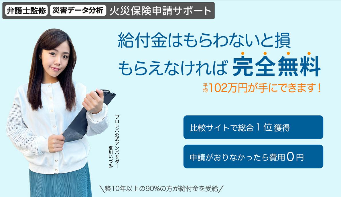 | 商品名 | 火災保険申請はプロレバで、高承認率と低コストを実現 |